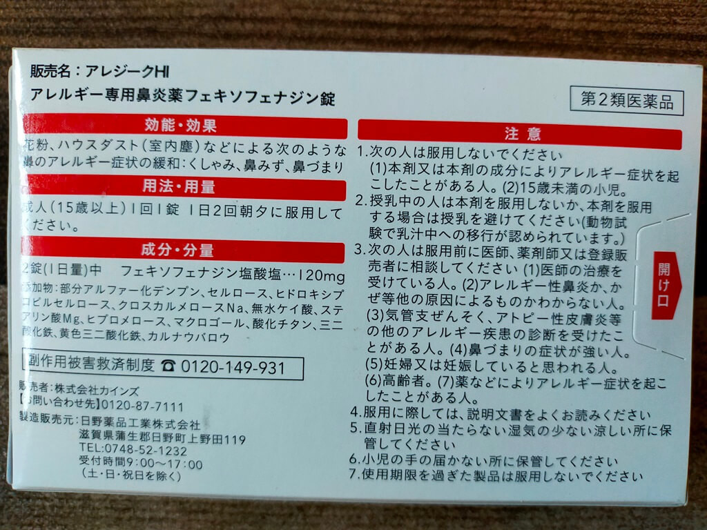 筆者は毎年病院で花粉症の薬を処方してもらっており、今回も病院受診するまでの間として服用しましたが、まずはカインズの店員さんに相談をしてみる事をお勧めします。