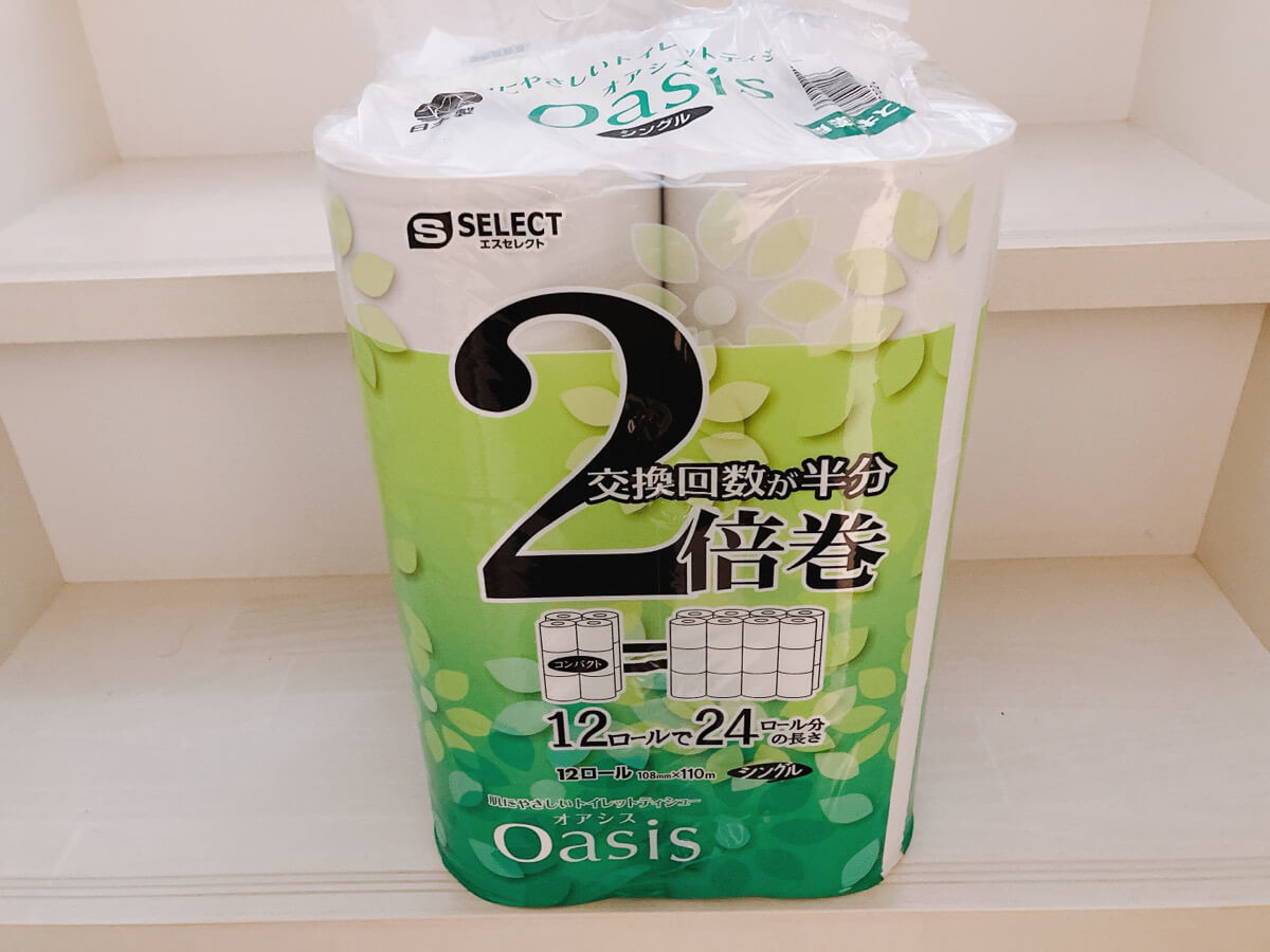 「2倍巻き」に変えてからは、1パック(12ロール)で24ロール分のトイレットペーパーの量があるので、月2パックあれば十分足ります♪