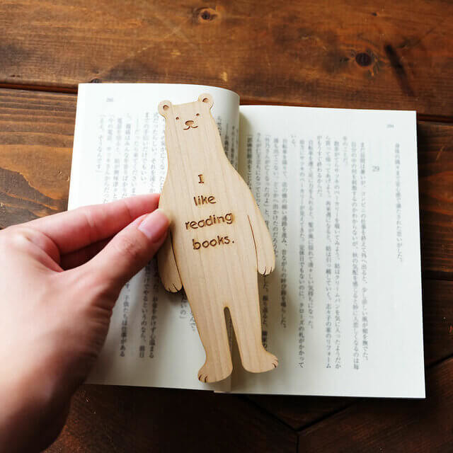 木製のくまさんがほっこり可愛い癒しアイテムにもなる、読書好きさんの必須アイテム「くまさんブックマーク」です。ブックマークすると、ひょっこり顔を出したくまさんが可愛すぎて悶絶しちゃいそうな作品ですね。