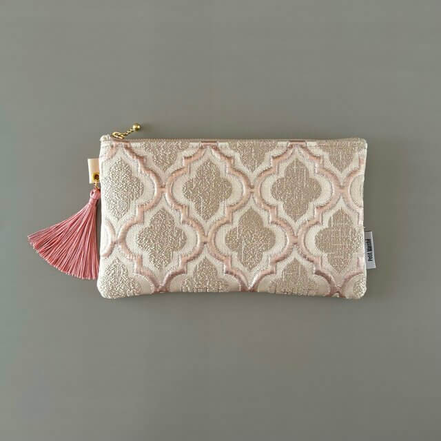ピンクゴールドとベージュの組み合わせが上品すぎる、大人女子にぴったりのアイテム「モロッカンポーチ」です。マルチポーチですが、ペンケースとして使っても◎ゴールドアクセサリーが好きな方にもぴったりなアイテムです。