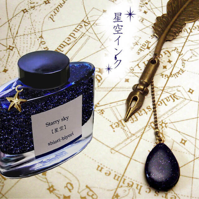 ファンタジック映画に出てきそうなビジュアルが大人気のアイテム「星空のインクのブックマーカー」です。星が散りばめられた星空のようなインクに相性ぴったりの、ペン型のブックマーカーは、置いておくだけでもおしゃれで素敵なアイテムですよ!