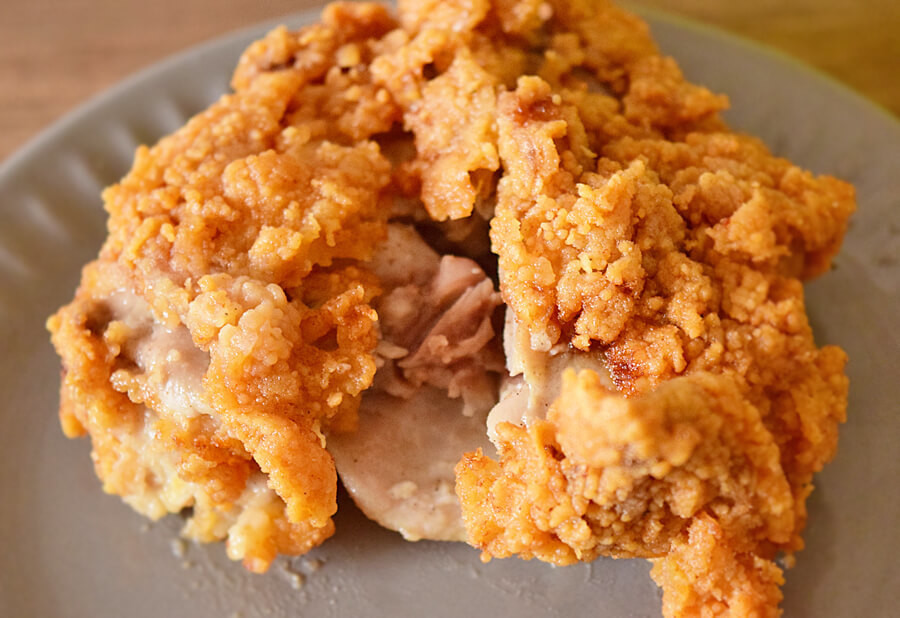 揚げ物2段重ねのインパクトすんごい。私のあごが小さいのか、一気にかぶりつくのが大変すぎるほどの厚みがあります。