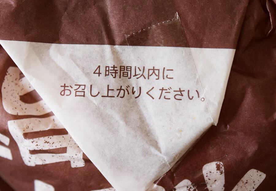 飲食チェーン店の持ち帰りメニューはたいがい「2時間以内」と書かれているケースが多いため、個人的にはわりと時間に余裕があると思いました。