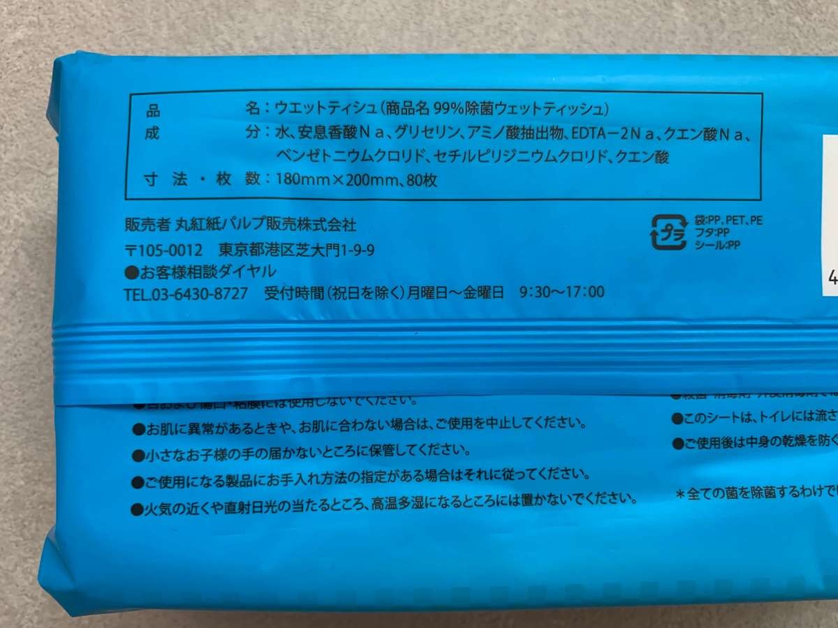 ノンアルコール・無香料のウェットティッシュなので、場所を選ばず、気になる箇所に使えるのがうれしいポイント。99%除菌と記載されています。