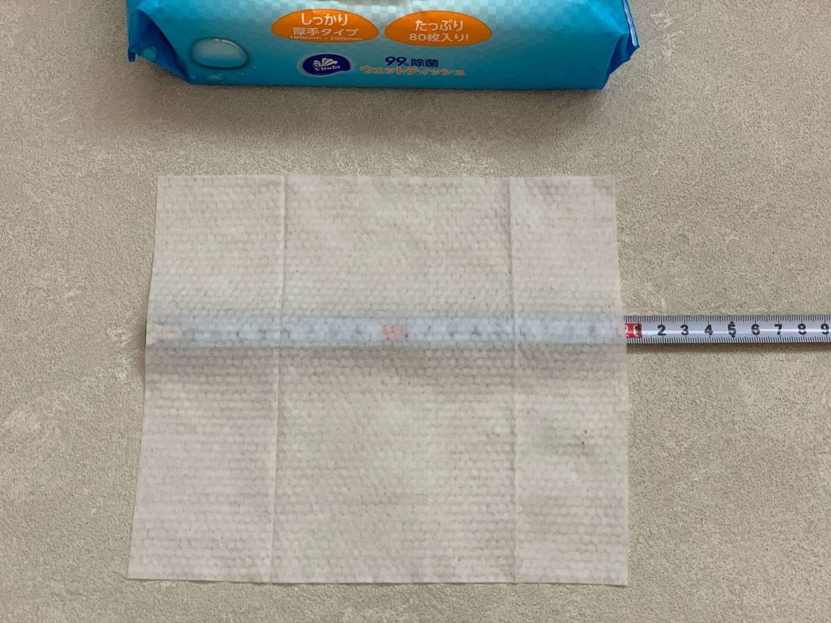 ウェットティッシュ本体は、18×20cmの大判サイズ。厚手で水分がたっぷり含まれています。