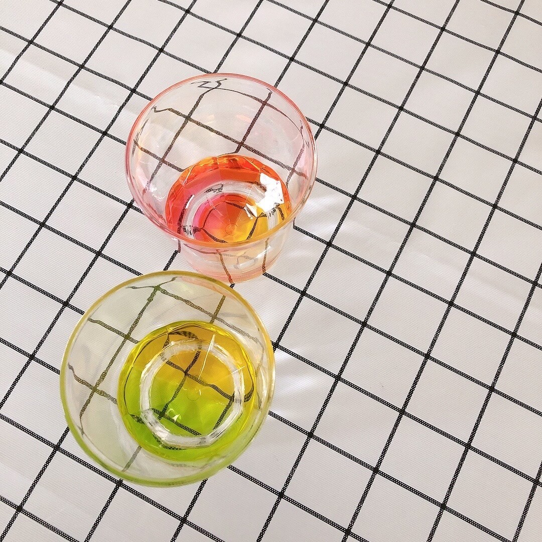 レインボータンブラーはプラスチック製で、底がダイヤモンド状に凹んでおり光を当てるとレインボーに見えるコップで、夏になると品薄状態になる人気のコップでした!