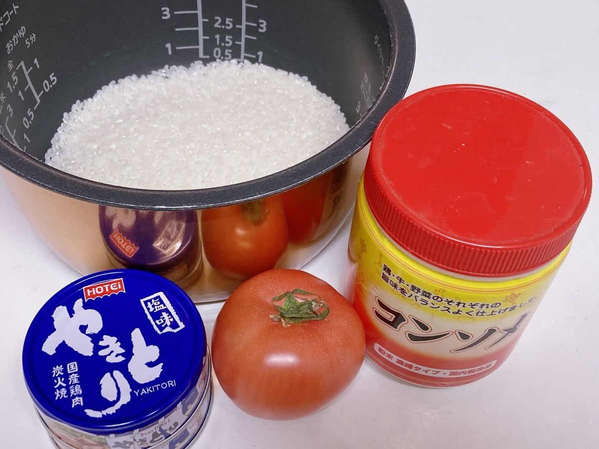 ここでは、家事ヤロウで紹介されたホテイフーズ公式『トマト丸ごと!洋風やきとり炊き込みご飯』を作ってみました。