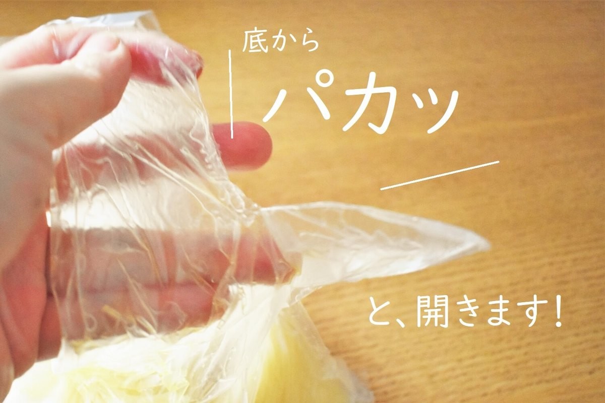 そこで、今回はこんなものをお試し!セリアやダイソーで販売されている「パカッと(底から開封できる)調理用袋」です!