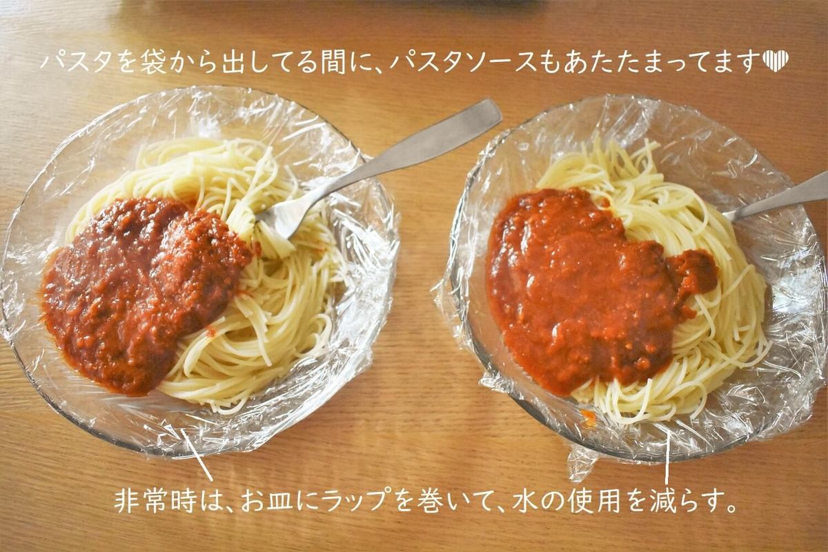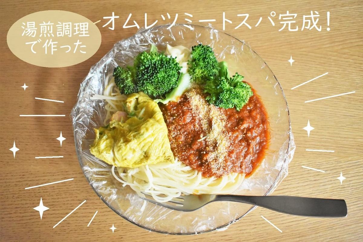 今回、この調理用袋を使って、極力「水」やエネルギーを使わず調理することができるのか、湯せん調理にチャレンジ!「ミートスパゲティー」「オムレツ」「ブロッコリーサラダ」の3種類を2人分作りたいと思います。