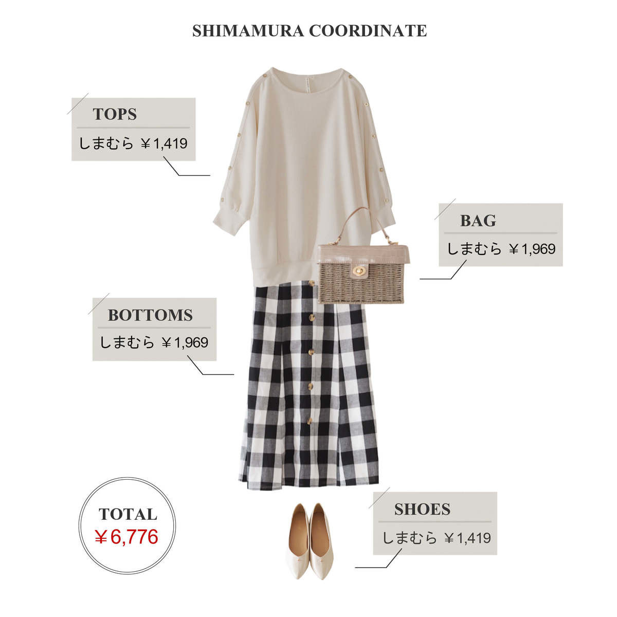 ギンガムチェックスカートを主役にしたよそゆきコーデ。