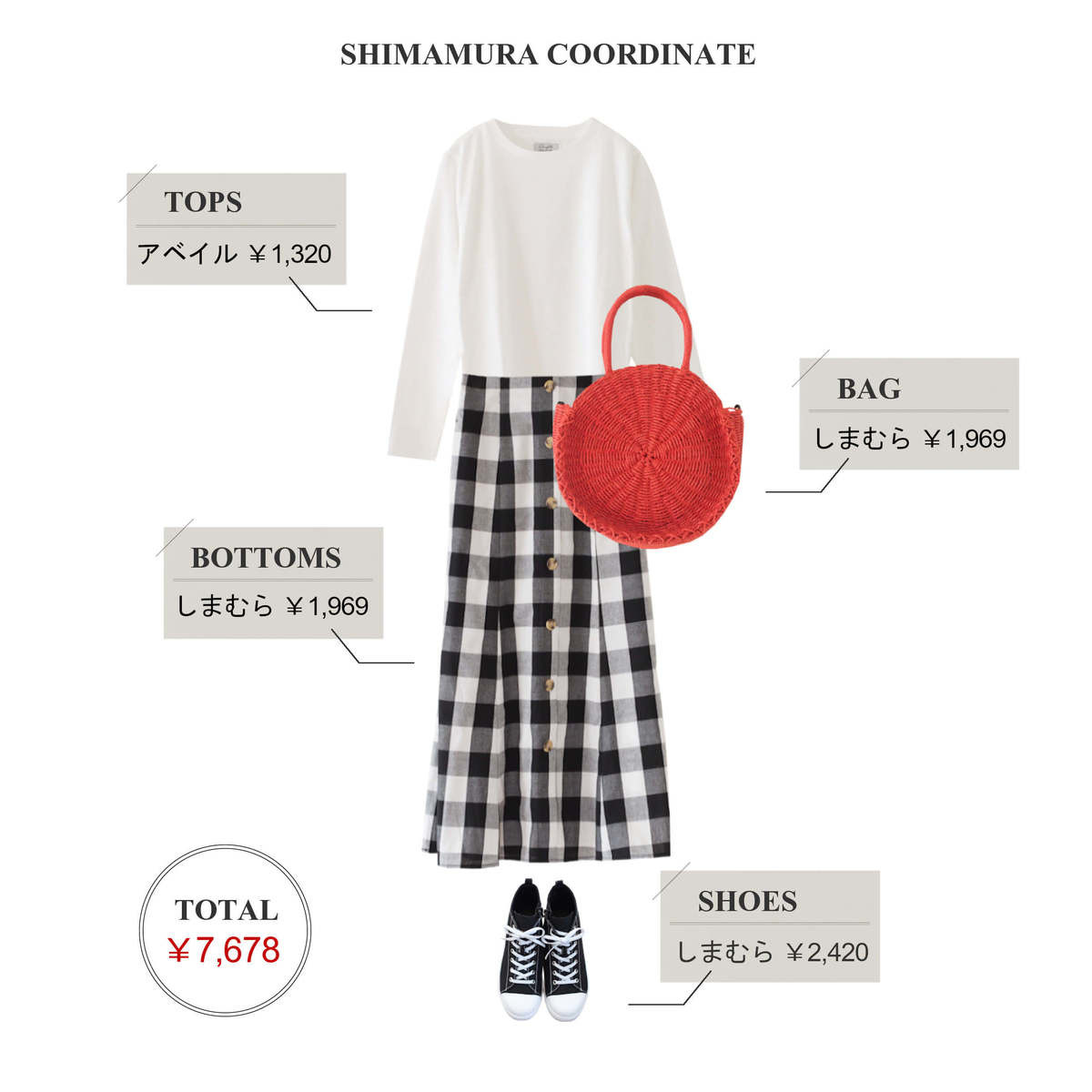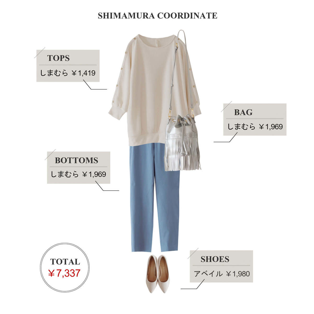 使用したアイテムはすべて、しまむらと系列店「アベイル」のものです。