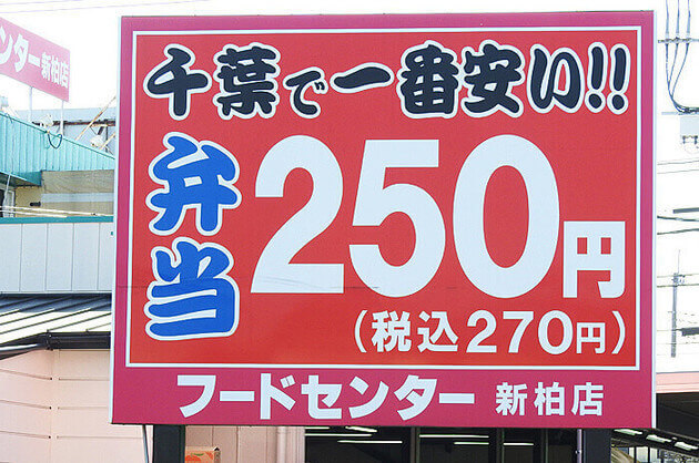 千葉で一番安いお弁当(税込270円)という看板が目立つ、フードセンターわたなべ。