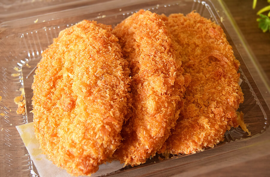 フードセンターわたなべは、惣菜も安いんです。今回購入した「牛肉コロッケ」は1個あたり約70円なので、目を見張るような安さではないものの……。普通のコロッケより、なんだか大きいような。