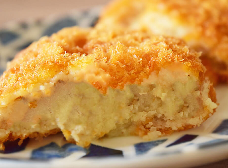 温め直さずにカットしてみたら、全体的にふにゃっとしてました。サクサク衣を好むならば、オーブンで温め直しをおすすめします。中身はほぼじゃがいも。ときおり牛肉が入っている程度。シンプルなコロッケです。