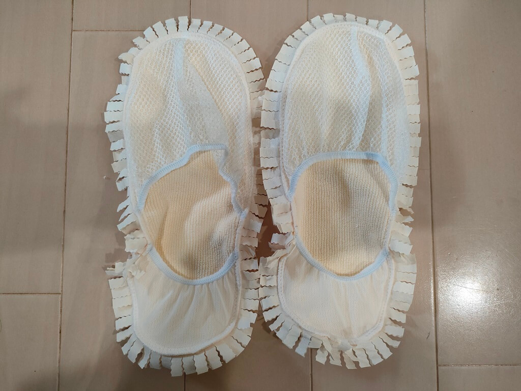スリッパ自体にモップが付いた様なお掃除スリッパだとお値段はもっと高くなりますし、何より来客時などに普通のスリッパとして使用することは難しいでしょう。その反面こちらの商品は必要な時にスリッパに装着するだけでお掃除スリッパになってくれます。
