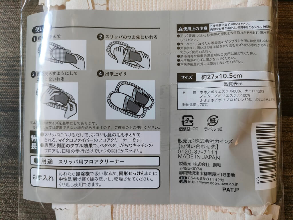 こちらの商品はスリッパに装着することで床の掃除ができるアイテムで、498円(税込)でした。
