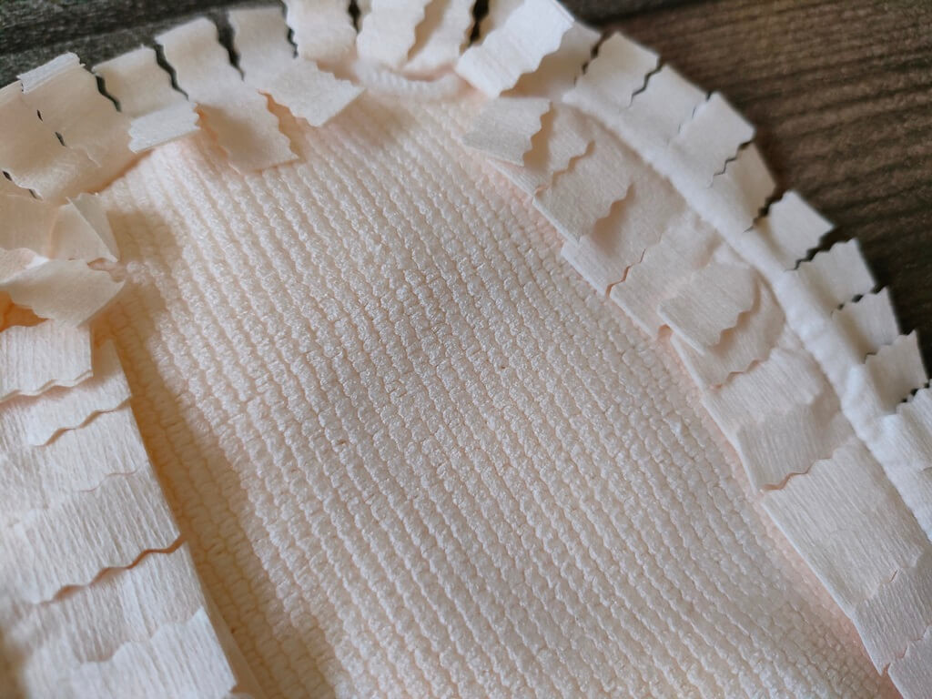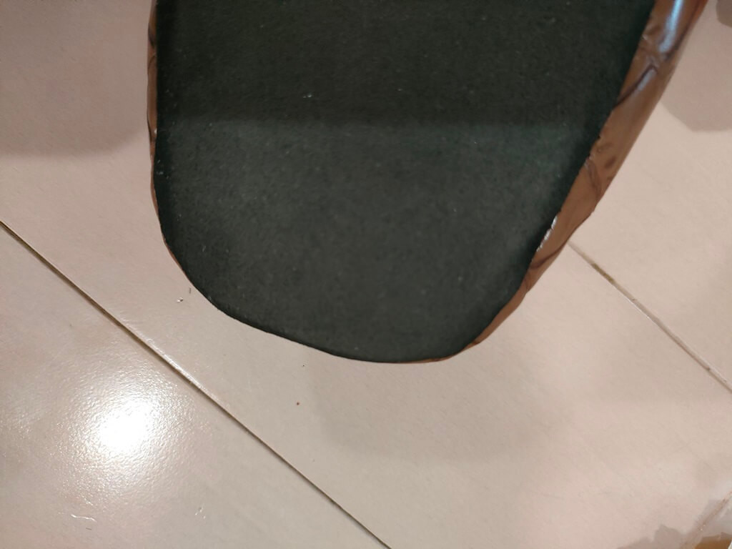 袋からだして改めて見てみると、なかなかパンチのある見た目。正直ちょっとダサめ?かもしれませんが、手持ちのスリッパにつけるだけという手軽さは良いですよね。