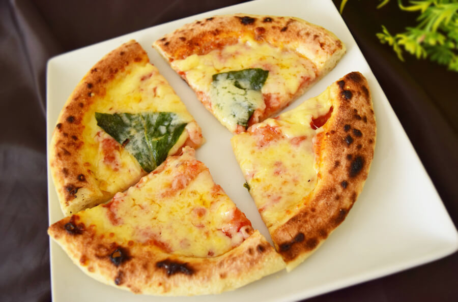 チーズがほどよくとろけていますね。ピザ生地もこんがりとしていて食欲がそそられます。カットはされていないため、食べる前にナイフや包丁で切るスタイルですね。