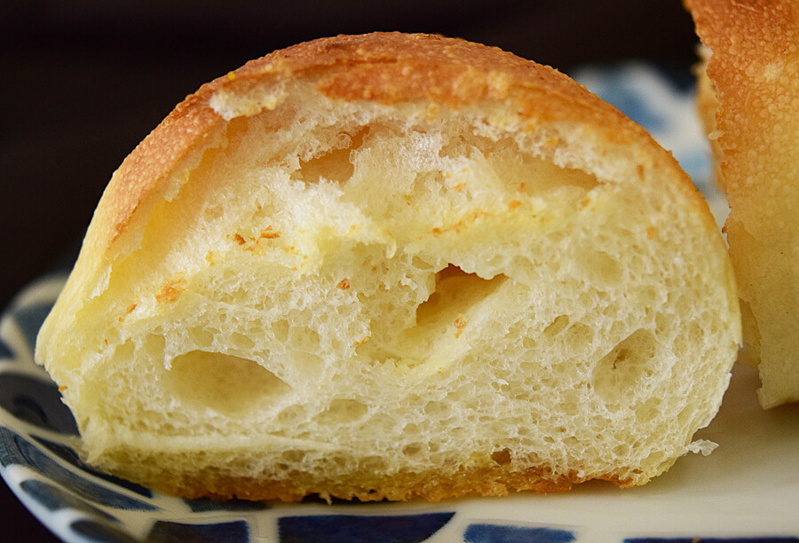 パン生地の底面はべっとりしているので、底面は持たずに食べると手がベトベトになりませんよ。