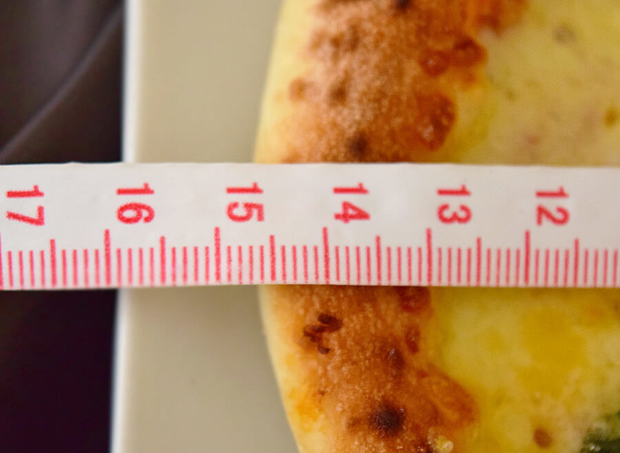 ピザの直径は約14.5cm。ピザ・カリフォルニアのSサイズピザの直径が約20cmなので、もっちり釜焼きマルゲリータそれよりも一回り小さいサイズ。