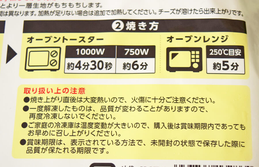 オーブンで1~2分程温めると、サクッと感が戻りますとの記載あり。余力があれば、温め直ししてから食べましょう。