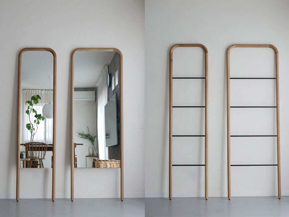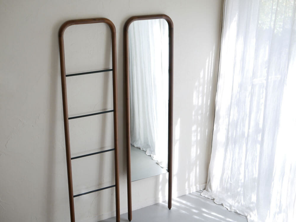空間を広く明るくさせる姿見、収納性もありしゃれ感のあるラダーハンガーを置くだけで部屋にリズム感が生まれ、思っている以上の何かを部屋に添えてくれます。