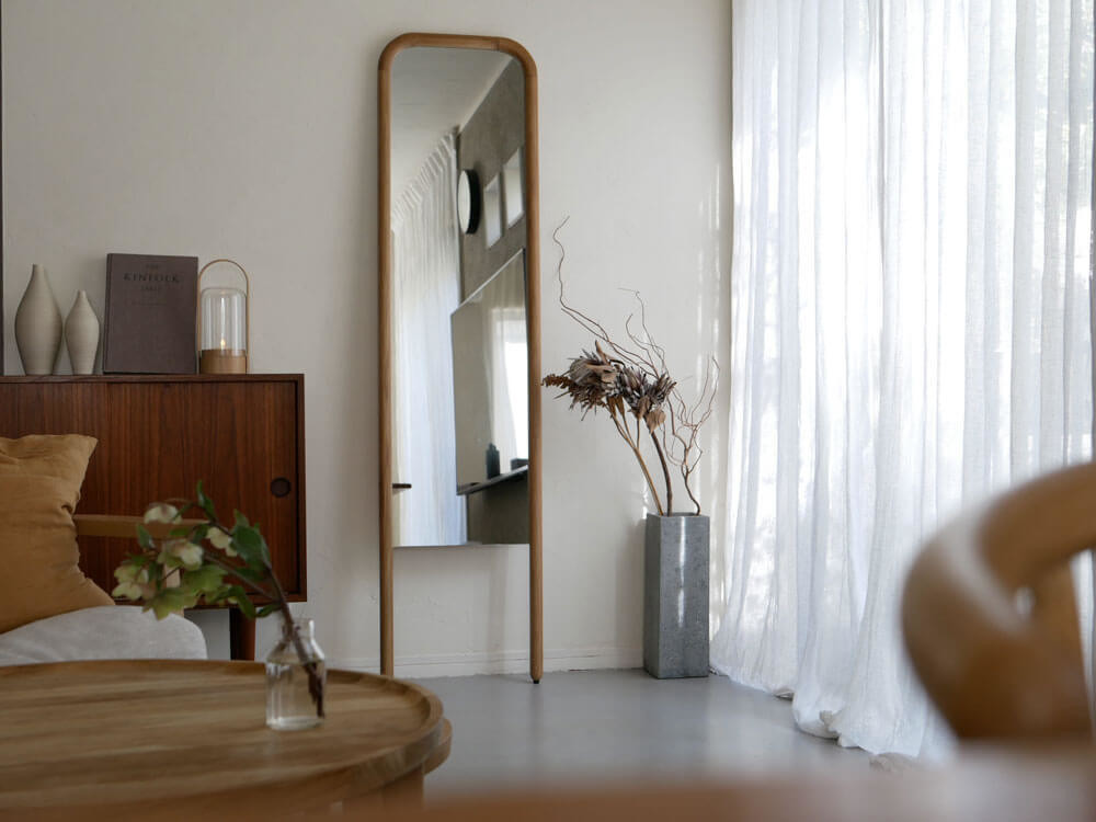 よくあるただの姿見ではなく、シンプルだけど他には無いデザイン性がポイント。