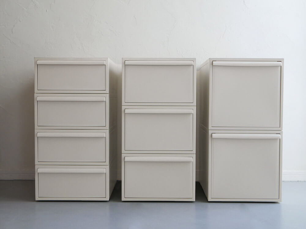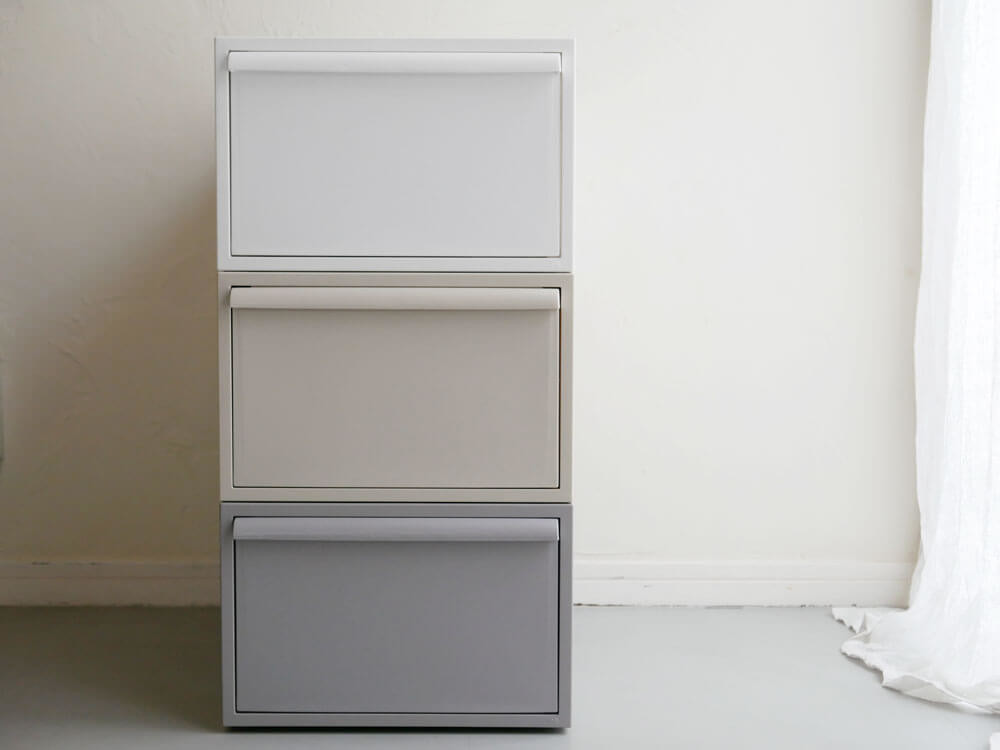 絶妙な色合いに加え、中身が見えないので生活感もフリーに。 居心地の良い空間そのままで収納力をUPしてくれるんです。