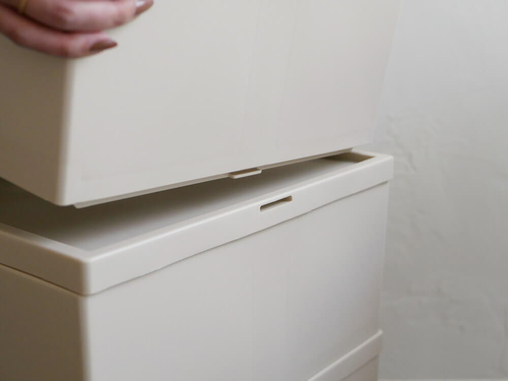 これだけで?!と不安になるかもしれませんが、しっかりロックされて小さなお子様がいるご家庭や、重ねたまま移動する際もぐらつくことなく安心なんです。