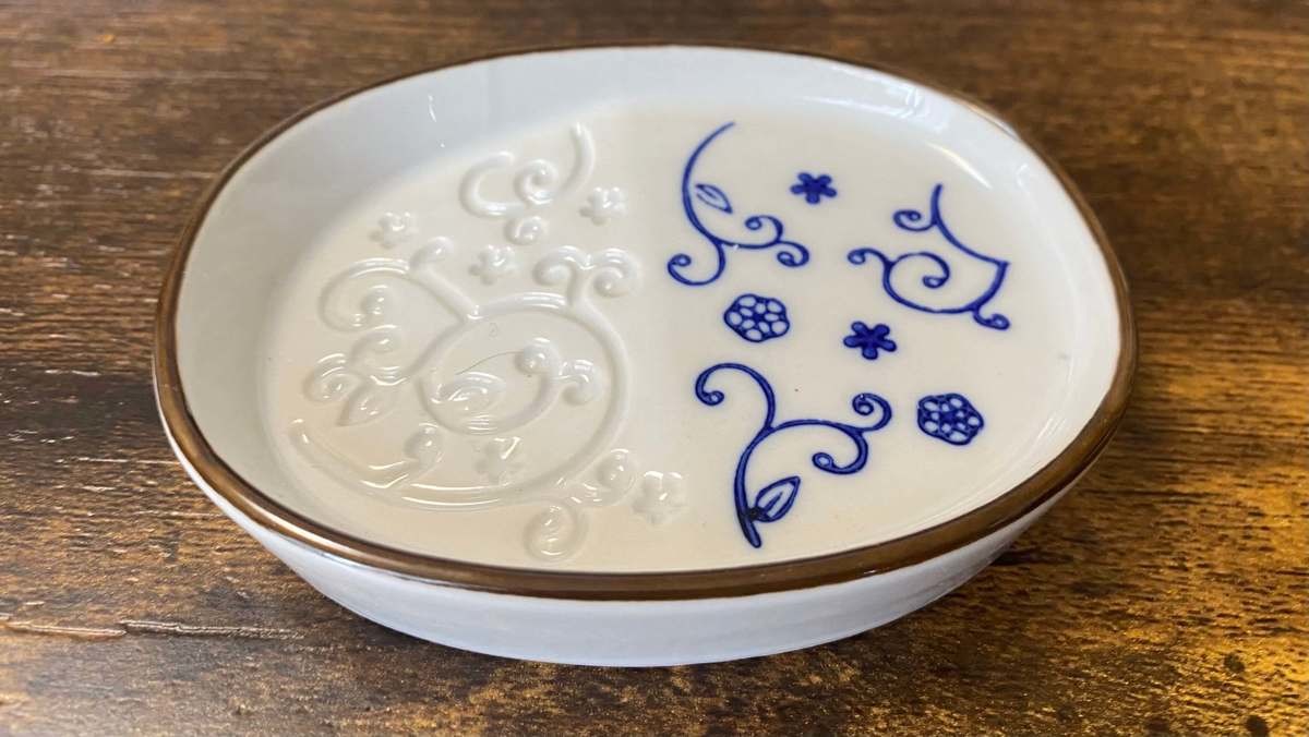 そんな方におすすめしたいのが、「ななめ醤油皿 藍和柄」。