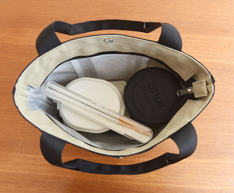 バッグの中全体を保冷してくれるので、複数のお弁当箱はもちろん、スープジャーや大きめカトラリーも一緒に入れることができます。