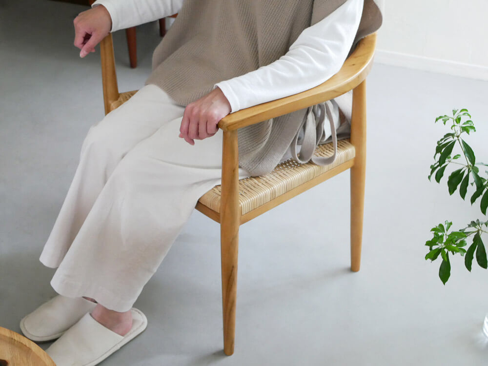 さらに今回の「IDENTITY ダイニングチェア」は、そのサンフラワーラタンの100周年記念を祝って、現代デザインに影響を与え続ける名作、THE CHAIR(1949年)の伝統的な名作チェアをもとに、建築家中西正佳氏デザインのチェア。