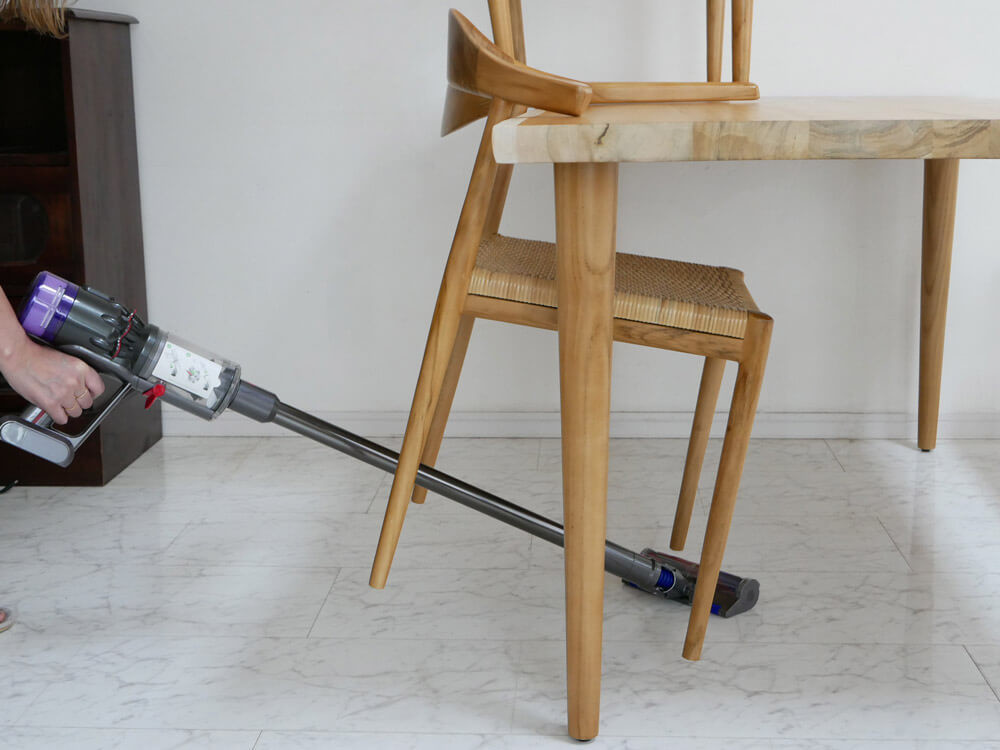 さらに「セミアームチェア」はダイニングの床お掃除の際セミアーム部分をテーブルに掛けることができるんです。