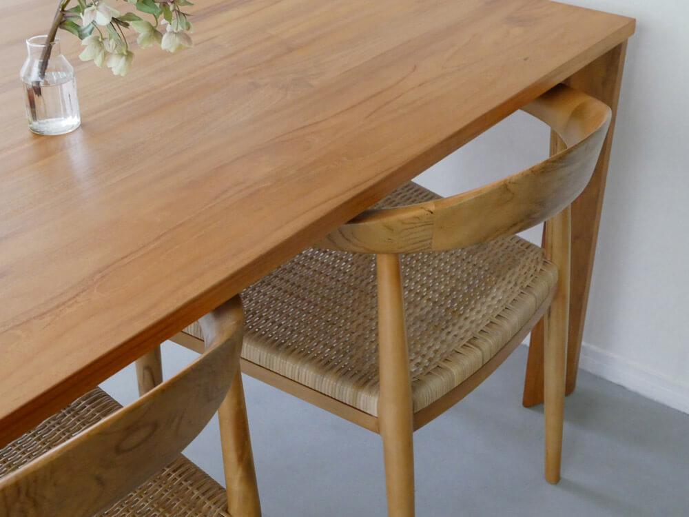 世界三大銘木のチーク無垢材をフレームに、座面には程よい弾力が心地良い籐(ラタン)を贅沢に使用した「ダイニングチェア」2種。目利きスタッフが即買いした、自慢の椅子をご紹介します。