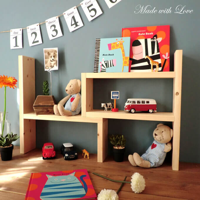 文房具などを見せる収納で、おしゃれ見えを狙いたい方にぴったりの、お好きな長さに調整できる「スライドシェルフ」です。ナチュラルカラーなので比較的どんなテイストのインテリアにも馴染むので、届いてすぐ飾れるのもいいですね!