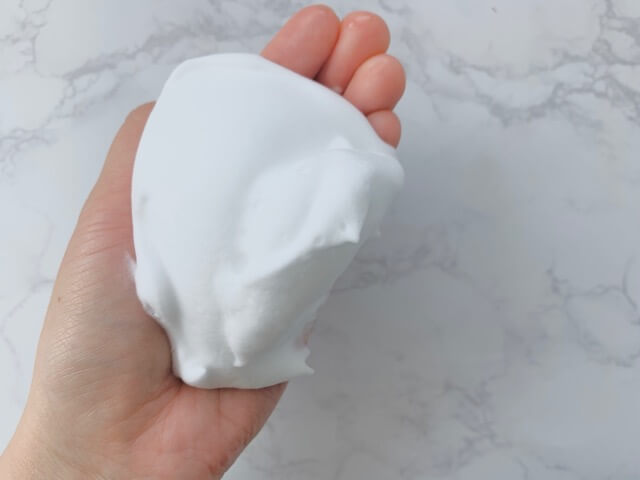 もっこもこでキメの細かな泡の完成!! 洗顔2回分くらいの泡ができるほど。
