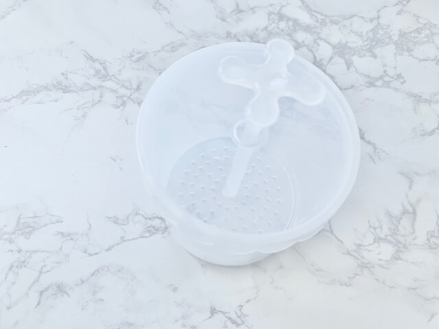 最後に、ふたとスティックのついた面を容器にセットし、ふたを抑えながらスティックを上下に動かし泡立てます。