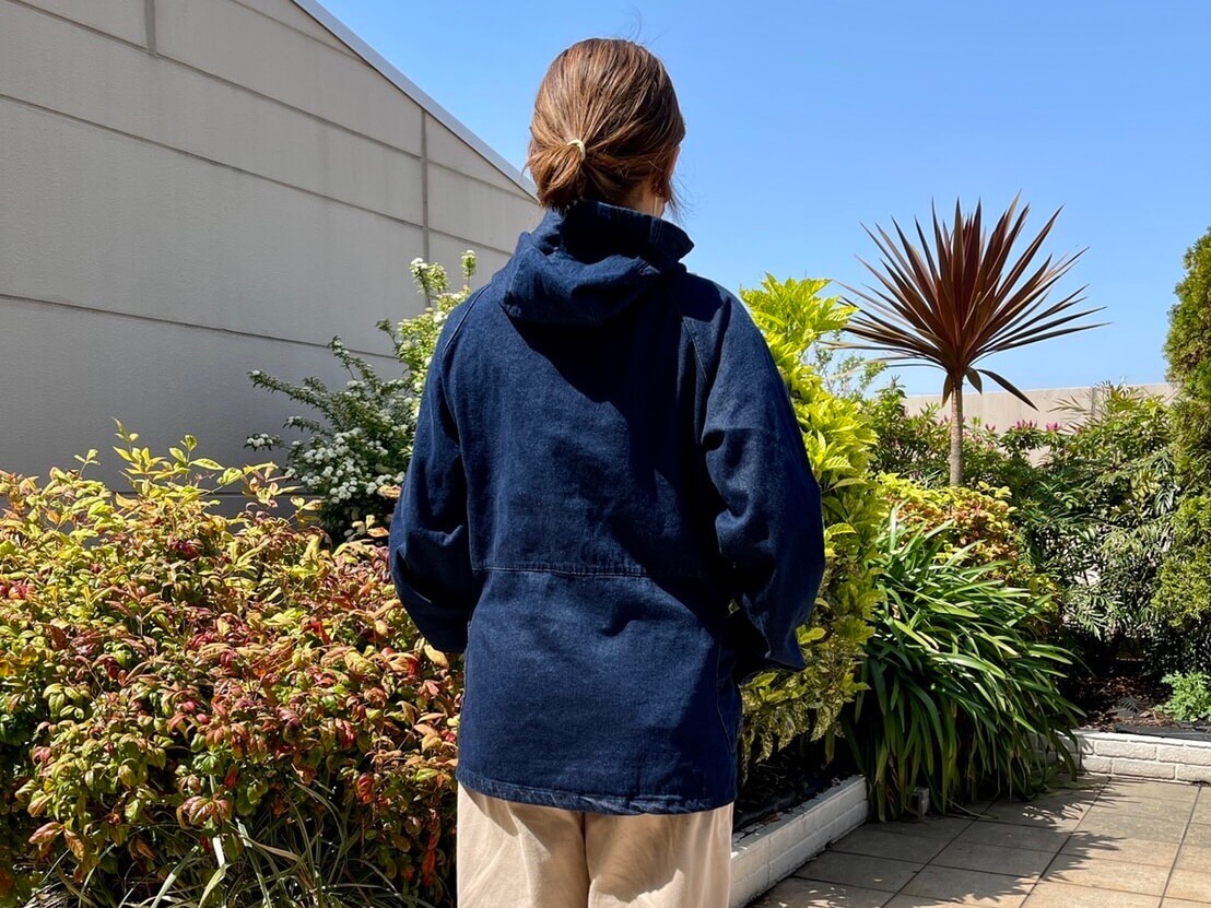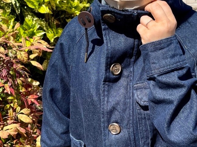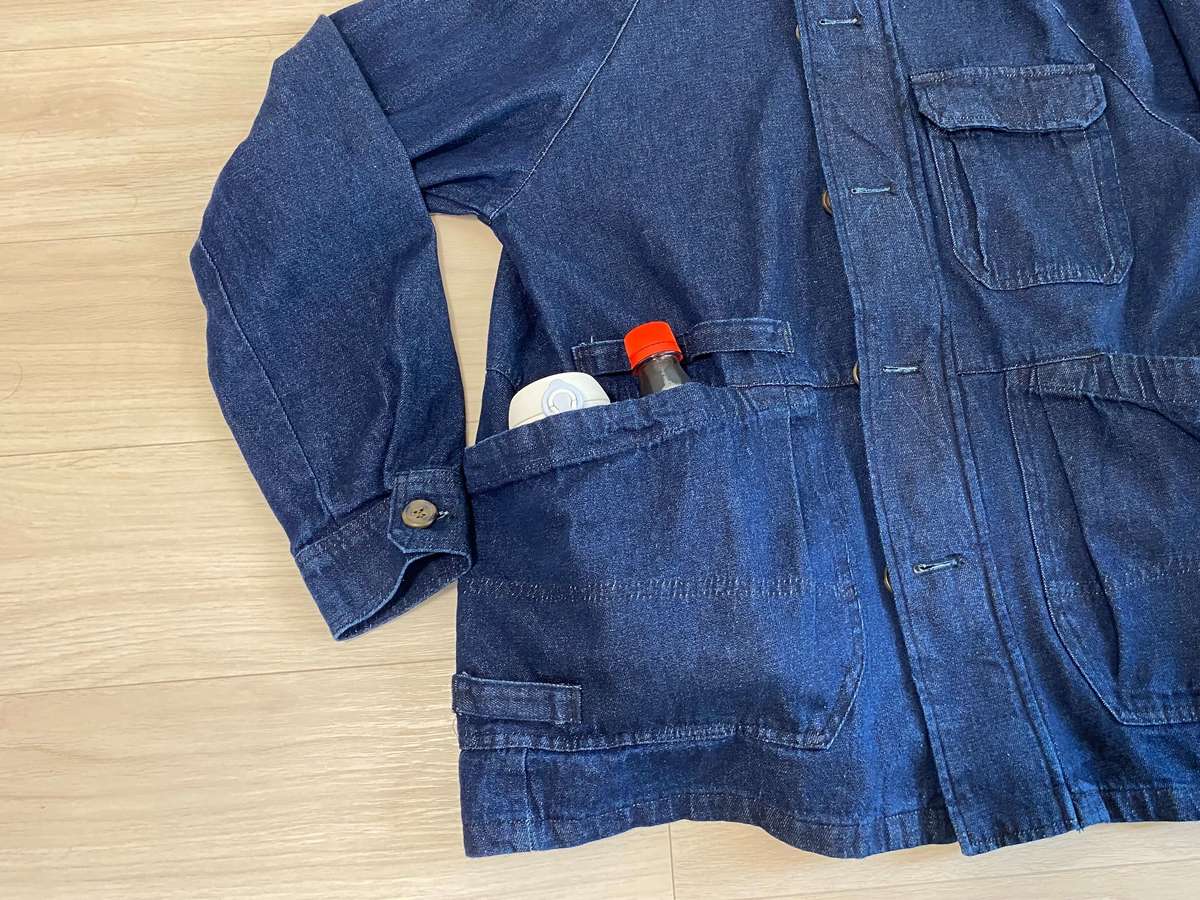 綿100%でできた、厚めで丈夫なジャケットです。春、秋のアウターに使いやすく、さらに夏の明け方の冷え込む時間帯にもぴったりです。