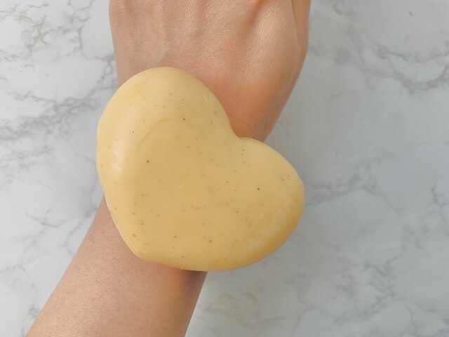 TwitterやInstagramでも大人気のこの商品。桃尻をイメージさせるハート形の石鹸で、見た目もとってもキュート♡