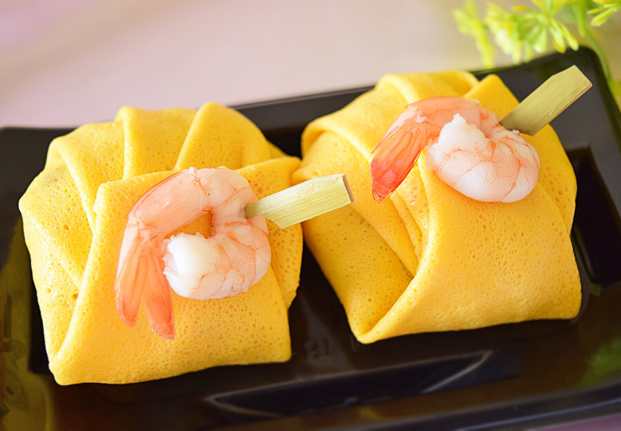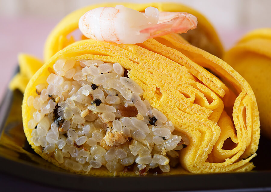京樽ファンなら、一度は食べたことがある伝統の一品「京樽伝統の茶きん鮨(2個入り)」440円(税込)。