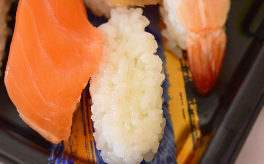 まぐろやサーモンなどが入っています。小腹が空いている程度であれば、充分な量です。