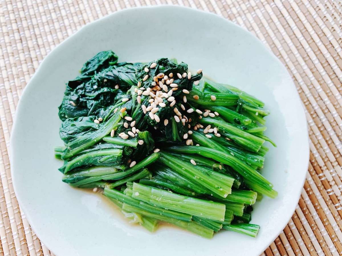 ほうれん草のごま和えにピーナッツバターを加えるアレンジは、昔からある方法ですが、使うピーナッツが上質だからかクリーミーでおいしく仕上がりました。