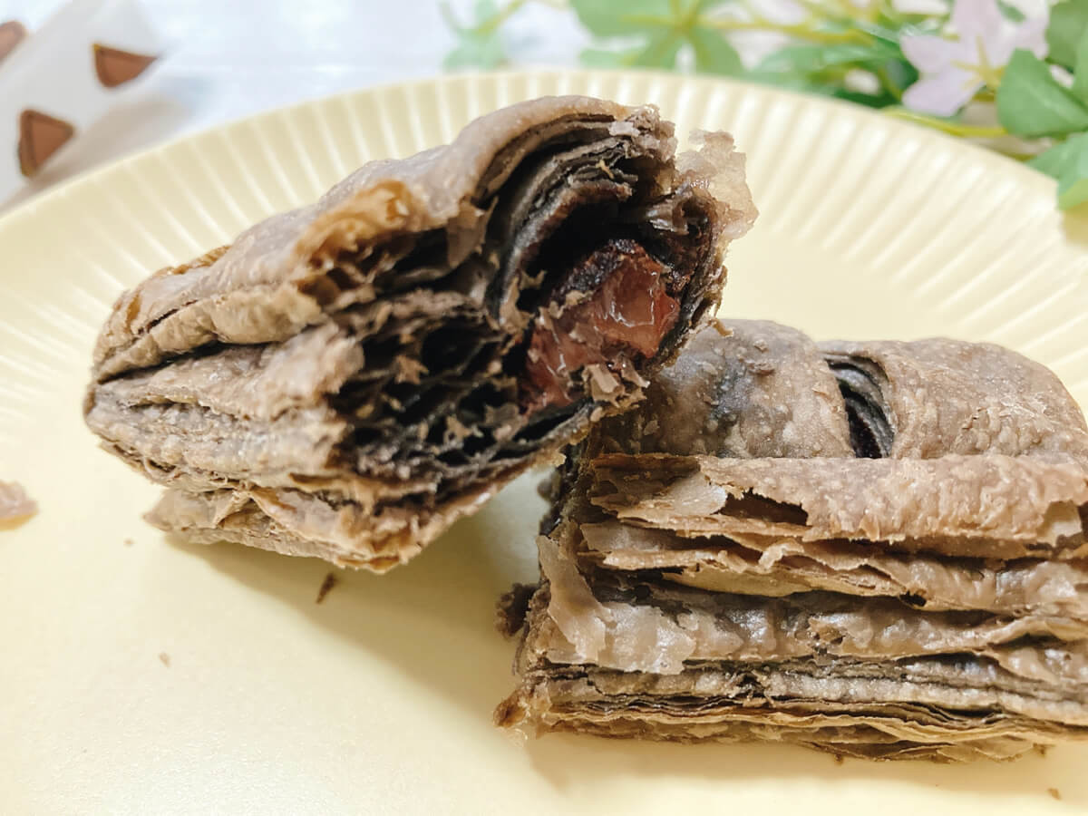 パイ生地にもブラックココアが練り込まれているので、全体的にビターな味わい。