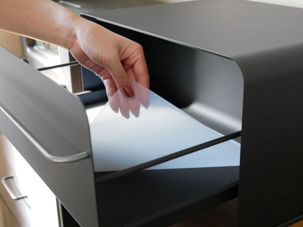 引き出し内底面にはシリコン製のクッションシートが付属しています。 引き出し底板の傷付きを防ぎ、置いた場所の滑り止め、音を軽減してくれます。