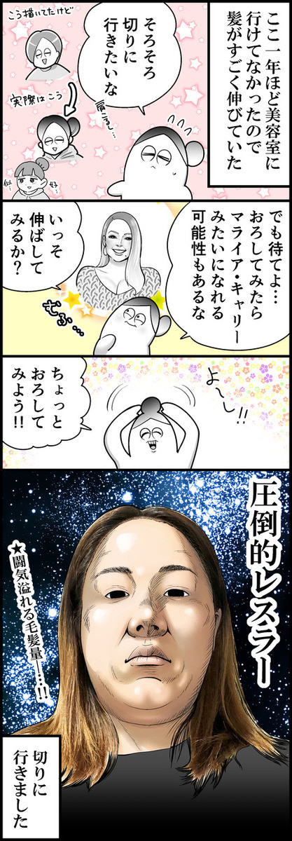 鏡を見たら「話が違う~!」(号泣)【漫画】マライアのはずが最強◯◯降臨!?【本当にあったヘアスタイルあるある話】
