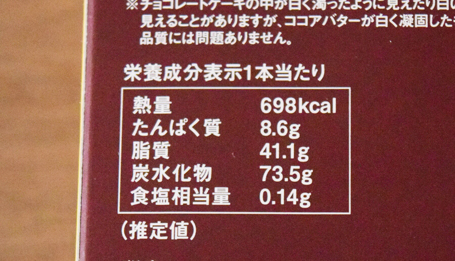 箱の中にはポロショコラ1本分入っていて、全部食べると698kcal。うっかり全部食べてしまわないように気を付けたいところ。