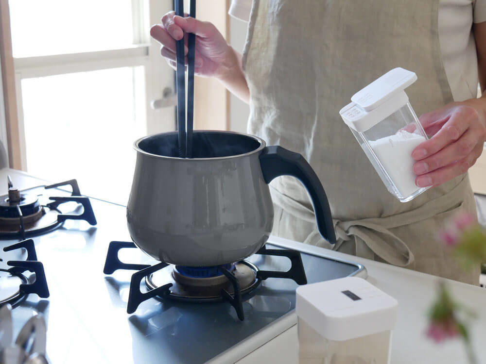 ガラスのようにきめ細かくなめらかな素材のため、食材がこびりつきにくく、油の量も減らせます。熱効率が良く、野菜の甘みを引き出します。