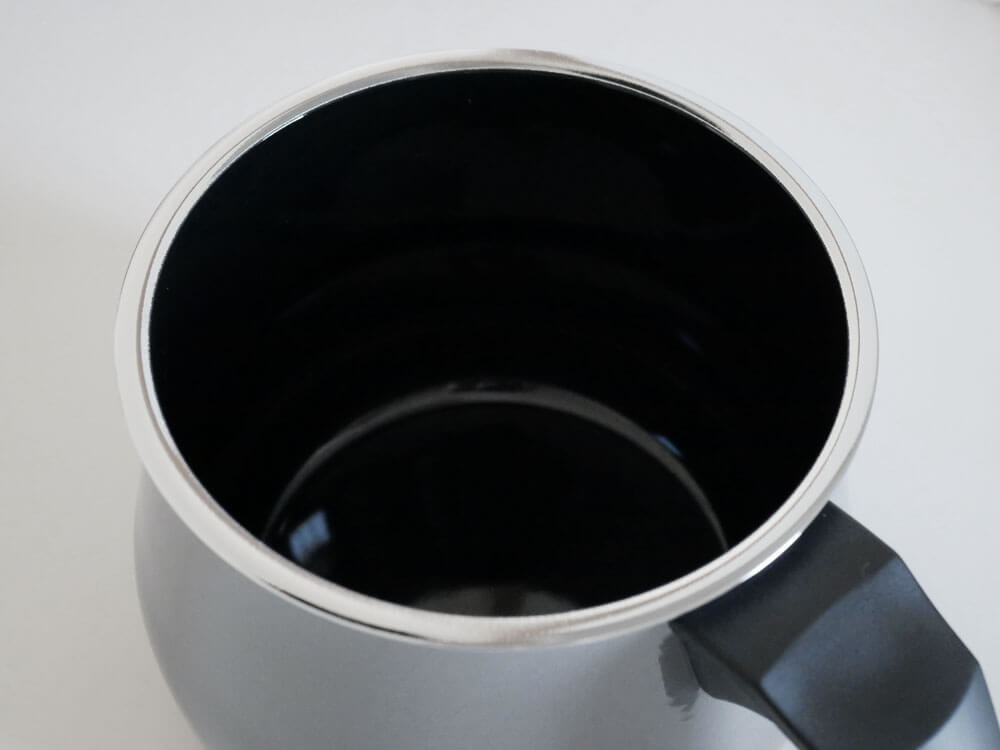 シックなカラーの中に、メタリック効果が施されていて、高級感を醸し出します。 様々なキッチンやテーブルにも調和するシンプルなデザインで、男性からご年配の方まで長く愛用できます。