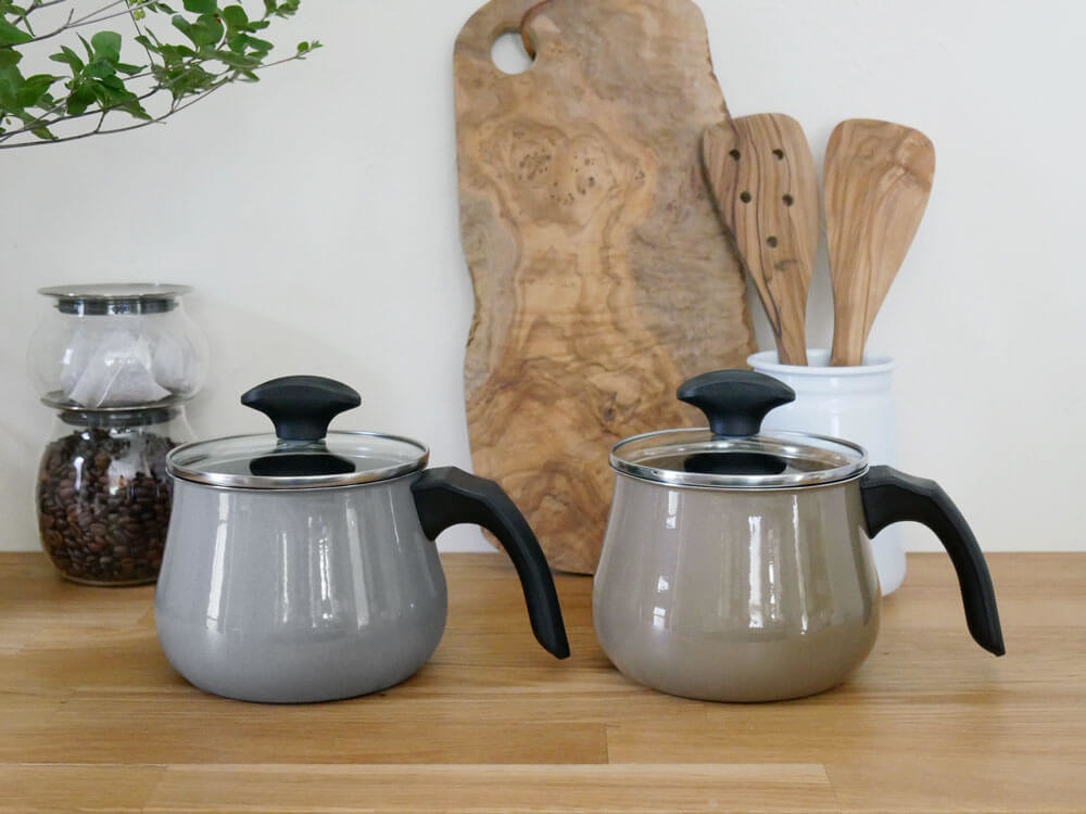 液だれしない仕様の注ぎ口、注ぐのに握りやすい形状のハンドルで湯沸かしなどにも最適です。