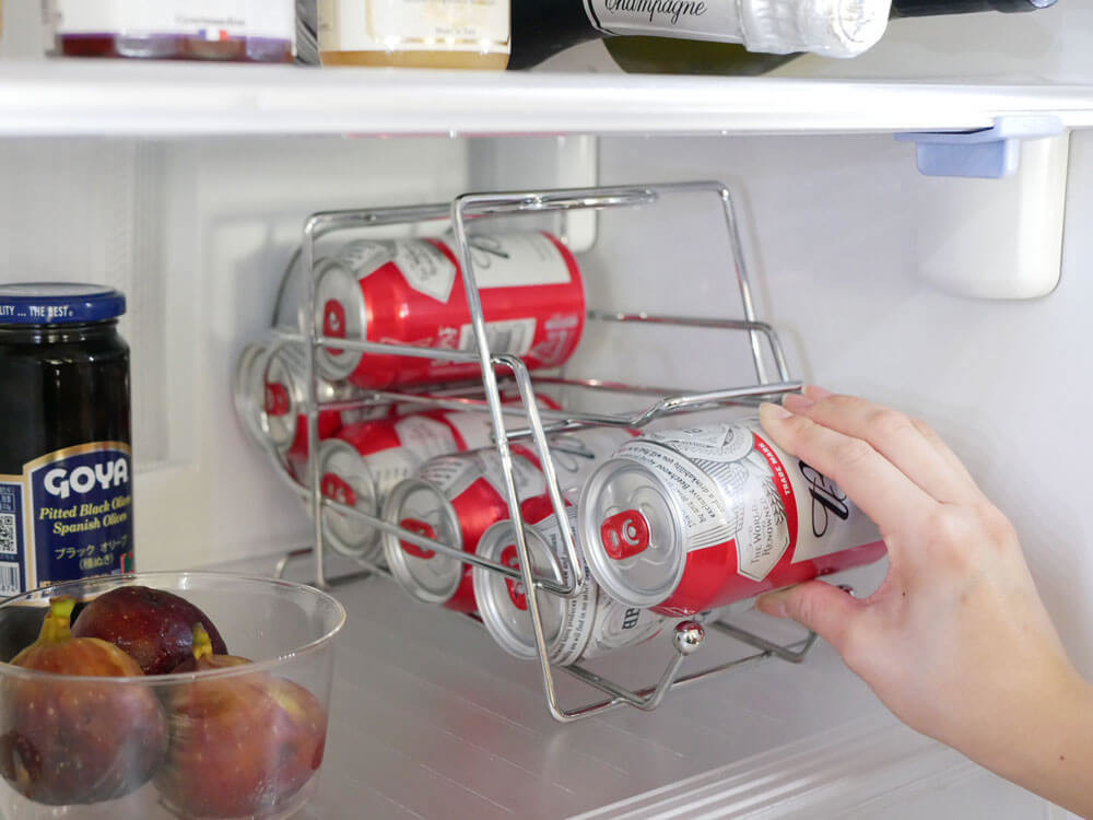 ウソ、倒して転がすのがイイの!?【カンディスペンサー】冷蔵庫「缶かさばる問題」スッキリ解消!「意外な収納」が神